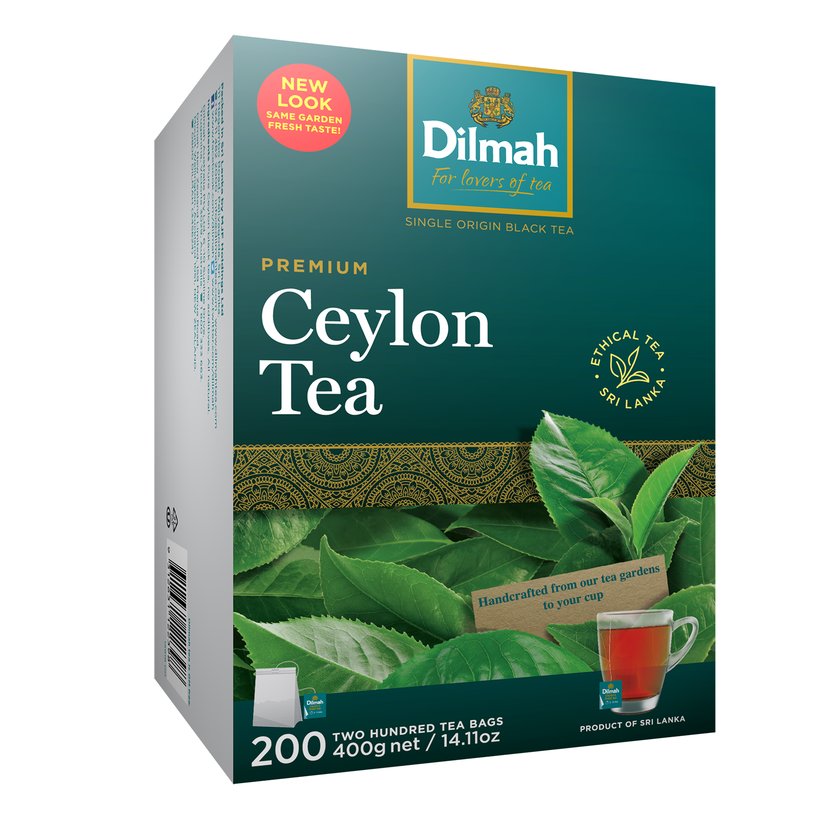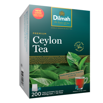 Finely balanced richness, flavour, strength and aroma for the perfect cup of tea. Our Premium tea is sourced from a single origin; the central highlands of Sri Lanka, reputed for its brightness and medium strength. Pure Ceylon Broken Orange Pekoe (BOPF) produces a pleasing brew, ideal for everyday drinking. The Dilmah Premium Ceylon Tea range introduces tea lovers to the romance of real Ceylon tea. This Premium Ceylon Black Tea product consists of 200 tea bags.