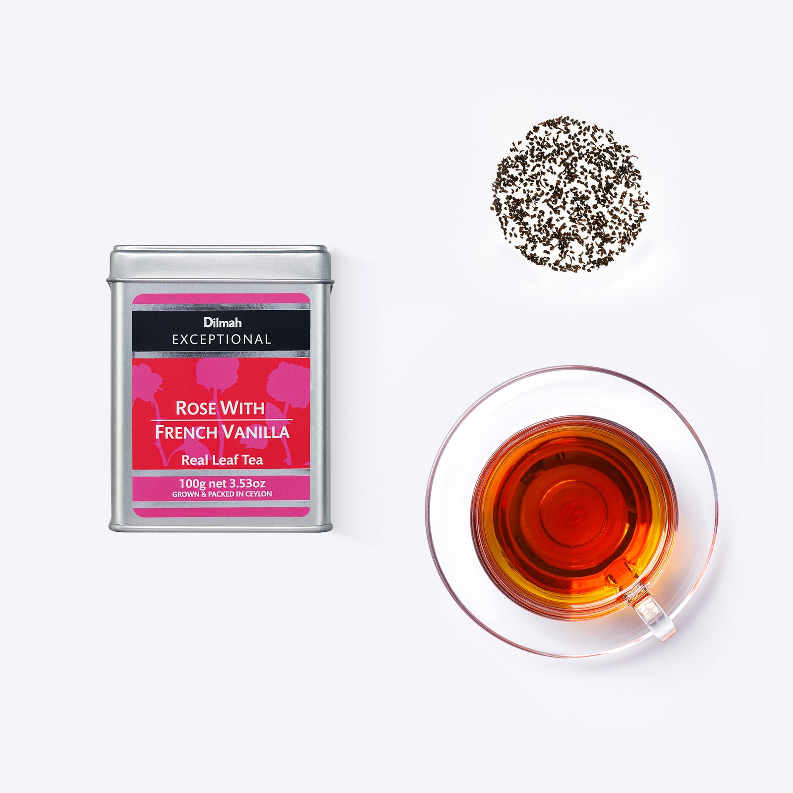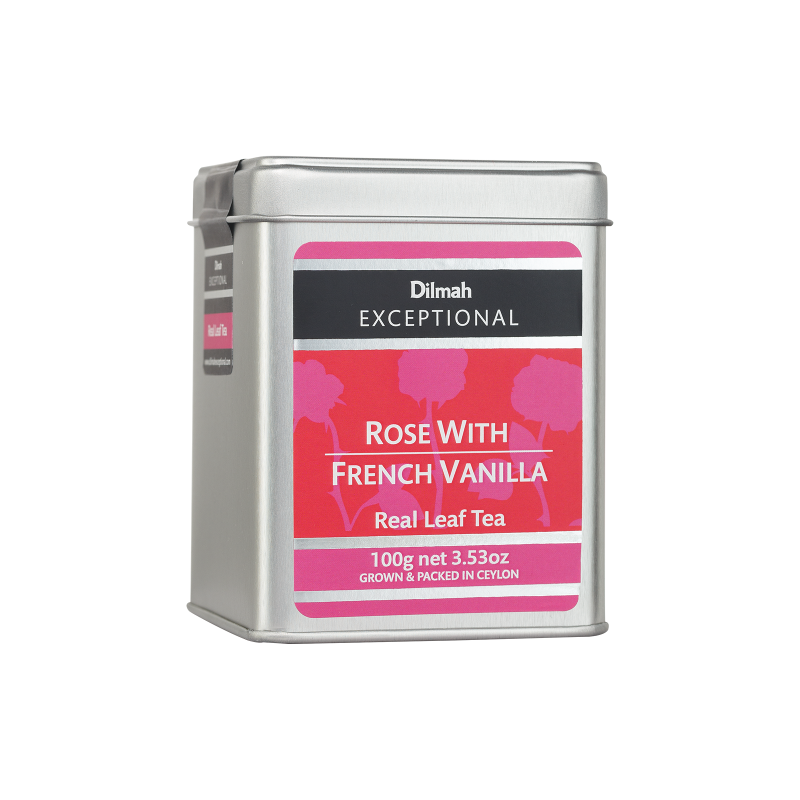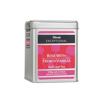 Dilmah Exceptional Rose with French Vanilla contains 100g of loose leaf tea in an airtight tin caddy that protects the tea’s freshness and aroma.