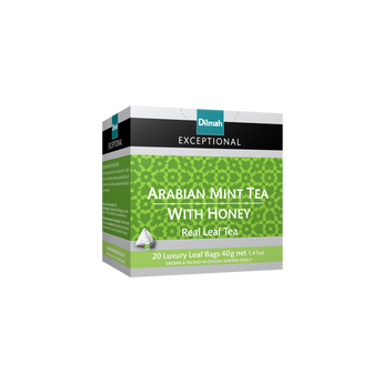 Dilmah Exceptional Arabian Mint with Honey contains 20 luxury (pyramid) leaf tea bags in an airtight foil pouch, protecting taste and flavour.