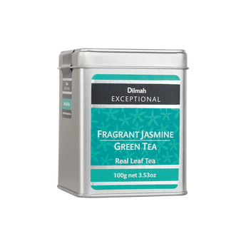 An inspiring green tea with bold leaf appearance, combined with petals of natural Jasmine flowers. The brew produced by this combination is mild and gentle; the special fragrance and a touch of sweetness comes from the night blooming Jasmine flower. A soothing and meditative tea.<br data-mce-fragment="1"><br data-mce-fragment="1">Dilmah Exceptional Fragrant Jasmine Green Tea contains 100g of loose leaf tea in an airtight tin caddy that protects the tea’s freshness and aroma.
