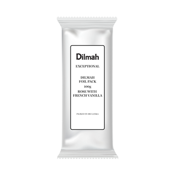 The Dilmah Exceptional Rose with French Vanilla refill foil pack contains 100g of loose leaf tea.