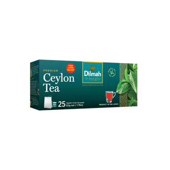 Finely balanced richness, flavour, strength and aroma for the perfect cup of tea. Our Premium tea is sourced from a single origin; the central highlands of Sri Lanka, reputed for its brightness and medium strength. Pure Ceylon Broken Orange Pekoe (BOPF) produces a pleasing brew, ideal for everyday drinking. The Dilmah Premium Ceylon Tea range introduces tea lovers to the romance of real Ceylon tea. This Premium Ceylon Black Tea product consists of 25 tea bags.